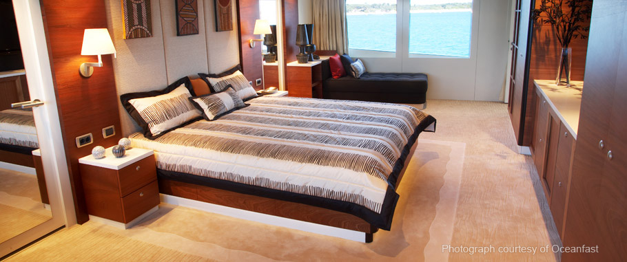 In recent years Meek Productions has been supplying upholstery services to Oceanfast Luxury Yachts & Austal Image(ships) completing work on 36m & 48m ,34m & 59m private luxury vessels. services supplied include upholstered wall and ceiling panels,external cushions,fitted upholstered furniture,bedheads & external equipment covers.